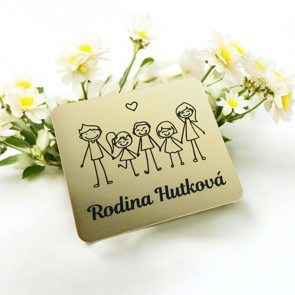 Rozkošná menovka s gravírovaným motívom rodinky. Tri veľké deti. Ideálne dotvorí vchodové dvere...