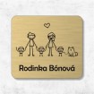 Gravírované rodinné menovky s piatimi členmi.