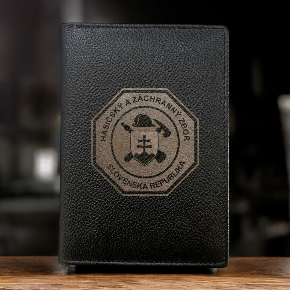 Dokladovka / púzdro na doklady z pravej kože s gravírovaním logom Hasičského a záchranného zboru. Vhodná na doklady od auta, služobné preukazy alebo iné doklady. Veľmi kvalitné šitie a prevedenie. Množstvo odkladacieho priestoru.